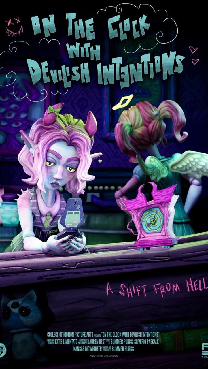 Currently, Summer continues to work her CG muscles as a freelance generalist, under the LLC ‘Witching Hour Animation,’ because it’s the closest she could get to being Victor Frankenstein. She is also an adjunct instructor at FSU FILM, teaching an intro course in her area of specialty - lighting and texturing for animation.
